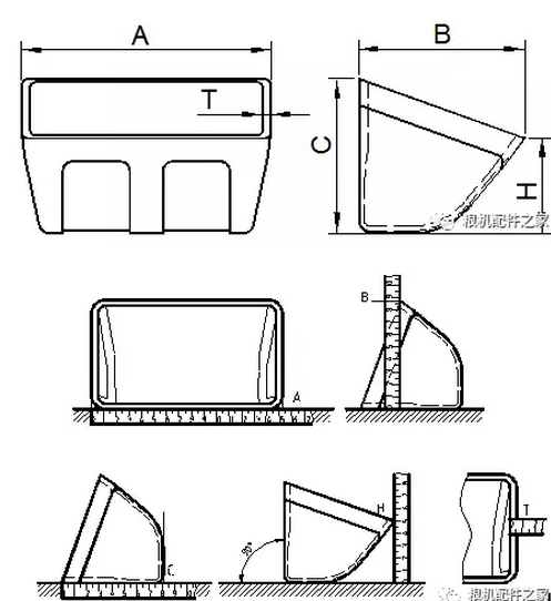 畚斗的測量:針對已有實物的畚斗進(jìn)行測量,正確測量方法如下圖